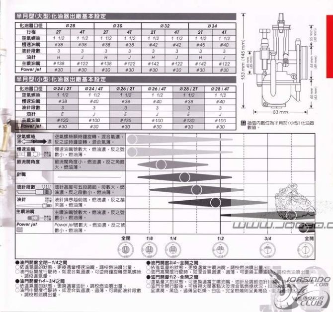 圖1.為KOSO目錄.PWK改裝化油器基本的調整方法. 有圖式概念提供給想自行改裝的朋友一個參考依據.. .基本上PWK.與PE.的調整方法大同小異. PS:須注意空氣流速.以及肥腸長短.效果會有明顯差異.