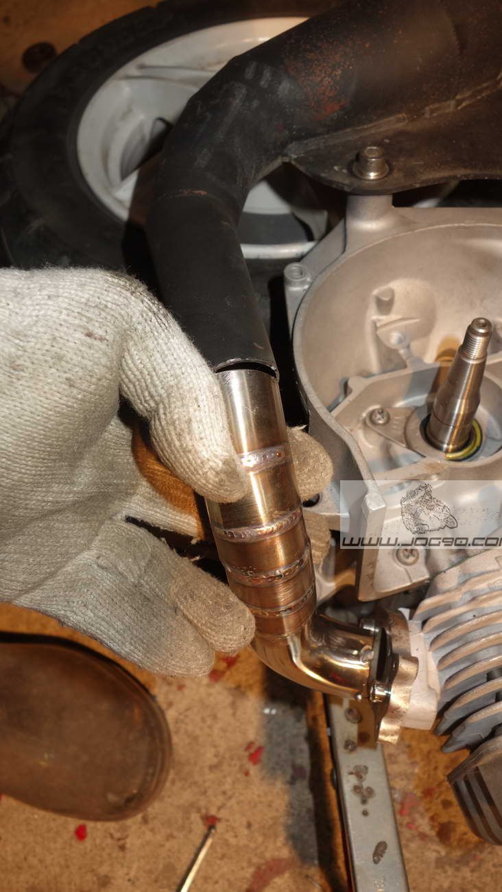 小改一下,换成 28MM前颈.但对比 MALOSSI那支专用的弯管,尾段加速也是差了一大段距离!